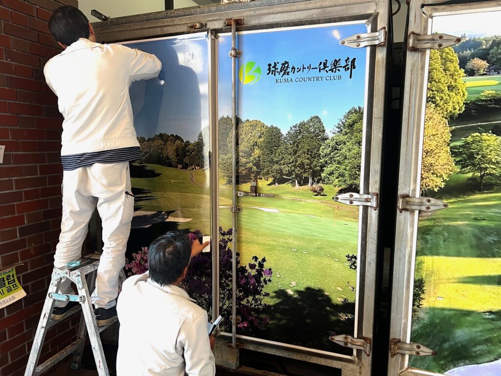 ラッピング・テント・ネオン コンテナにインクジェット印刷シート貼り 施工中 洗濯乾燥機にインクジェット印刷シート貼り インクジェット印刷シート 施工中 カッティングシート インクジェット印刷シート カッティングシート インクジェット印刷シート インクジェット印刷シート